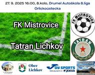 V 8. kole okresního přeboru zajíždí Tatran na horkou půdu do Mistrovic. Soupeř se momentálně pohybuje na čtvrtém místě tabulky a opět dokazuje, že chce znovu hrát o ty nejvyšší příčky. Sobotní utkání má výkop v 16 hodin.