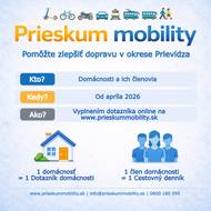 Od apríla 2026 sa obyvatelia okresu Prievidza môžu zapojiť do Prieskumu mobility 2026. Cieľom je zmapovať dopravné správanie obyvateľov a vytvoriť podklad pre zlepšenie dopravnej infraštruktúry a služieb verejnej dopravy v regióne.