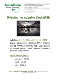 ZAS Lípa zahajuje od 1.4. 2026 rybolov na rybníku Kocháňák. Prodej povolenek v pracovní dny od 7:00 do 14:30 hod. – Edrová L., více informací na www.zaslipa.cz.