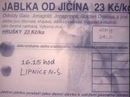 V pátek 5.12. v 9:00 hodin se na lipnickém náměstí uskuteční prodej českých jablek, hrušek, švestek a česneku. Prodej potrvá půl hodiny. Kontakt na prodejce: tel. 721-108-586