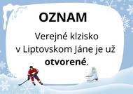 Vážení občania, verejné klzisko v Liptovskom Jáne je už opäť v prevádzke. Prajeme príjemné korčuľovanie.
