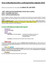 Připomínáme termíny a lokality svozů. Detaily v příloze.