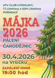 ATV CLUB Litohlavy, TJ Litohlavy a SDH Litohlavy pořádají MÁJKU 2026, tradiční pálení čarodějnic v naší obci. Akce se koná 30.4.2026 na Vršíčku, v 19:00 proběhne zapálení ohně.