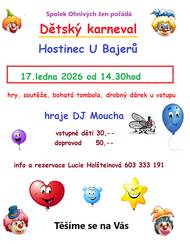 Spolek Ohnivých žen pořádá Dětský karneval 17.1.2026 od 14,30 Hostinec U Bajerů