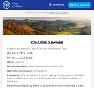 OZNÁMENÍ O HAVÁRII Loděnice Karlštejnská - oprava havárie vodovodního řadu Od: 20. 1. 2026 9:30 Do: 20. 1. 2026 13:00 Obec: Loděnice Důvod přerušení: Oprava havárie vodovodního řadu Náhradní zásobování: viz Poznámka Poznámka: NZV nezajištěno. Z důvodu opravy havárie vodovodního řadu bude v Loděnici bez vody část Karlštejnské ulice (od dálnice směrem na Bubovice). Po obnovení dodávky pitné vody bude provedena kontrola a odkalení vodovodní sítě. Detailní informace o dopadu odstávky ul. Karlštejnská V případě dalších dotazů, prosím, kontaktujte: Dispečink 311 747 120 Zákaznická linka: 800 100 663 poruchy@vakberoun.cz www.vakberoun.cz