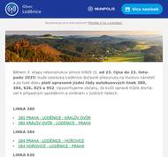 Během 3. etapy rekonstrukce silnice II/605 (tj. od 23. října do 23. listopadu 2025) bude zastávka Loděnice dočasně přesunuta na Husovo náměstí a po tuto dobu platí upravené jízdní řády autobusových linek 380, 384, 636, 825 a 952. Upozorňujeme občany, že kvůli opravě může docházet k případným zpožděním a změnám v jízdních řádech. LINKA 380 380 PRAHA - LODĚNICE - KRÁLŮV DVŮR 380 KRÁLŮV DVŮR - LODĚNICE - PRAHA LINKA 384 384 PRAHA - LODĚNICE - HOŘOVICE 384 HOŘOVICE - LODĚNICE - PRAHA LINKA 636 636 LODĚNICE - CHYŇAVA 636 CHYŇAVA - LODĚNICE LINKA 825 825 MOŘINKA - LODĚNICE - KRÁLŮV DVŮR 825 KRÁLŮV DVŮR - LODĚNICE - MOŘINKA LINKA 952 952 PRAHA - LODĚNICE - BEROUN 952 BEROUN - LODĚNICE - PRAHA