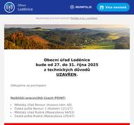 Obecní úřad Loděnice bude od 27. do 31. října 2025 z technických důvodů UZAVŘEN.