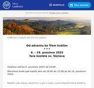 Loděnice v historii vás zve na výstavu Od adventu ke Třem králům * 6. - 19. prosince 2025 fara kostela sv. Václava Výstava začíná 6. prosince 2025 od 14:00. Otevřeno bude pak každý den od 10:00 do 17:00 až do 19. prosince 2025. Najdete zde ukázky vánočních zvyků a tradic a samozřejmě krásné betlémy. www.lodenicevhistorii.cz