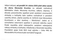 Dobrý den, od pondělí 14. dubna 2025 platí zákaz vjezdu do obory Moravský Krumlov. Hezký de