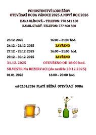 POHOSTINSTVÍ LODHÉŘOV OTEVÍRACÍ DOBA VÁNOCE 2025, NOVÝ ROK 2026