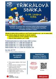 Tříkrálová sbírka 2026 probíhá po celé České republice od 1. do 14. ledna 2026. U nás můžete přispět do kasiček v prodejně COOP LODHÉŘOV od 12.1.2026 a na OÚ od 7.1.2026.