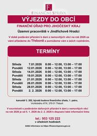 V době podávání přiznání k dani z nemovitých věcí na rok 2026 přijedou pracovníci Finančního úřadu do Třeboně a pomůžou zájemcům s jejich vyplněním.