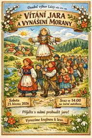V sobotu 21.3.2026 proběhne Vítání jara a vynášení Morany na Lázech. Začátek je ve 14 hodin na točně autobusu.