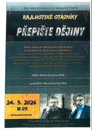 Škola v Ráji pořádá akci Rajlhotské otazníky - Přepiště dějiny. Hosté PhDr.Martin Groman, PhD. a prof.PhDr. Michal Steklík, PhD. 24.3.2026 od 18:30 hodin KD Rajnochovice.