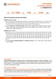 Plánovaná odstávka elektrické energie v obci dne 22.dubna 2026. Část obce Pivovárka a Lázy. Čísla popisné domů, kterých se odstávka týká naleznete v příloze.