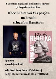 Obec Ľubietová Vás srdečne pozýva na besedu s Jozefom Banášom, ktorá sa uskutoční 14. novembra 2025 o 17.00 hod. v Kultúrnom dome v Ľubietovej. Súčasťou podujatia bude aj predaj kníh.