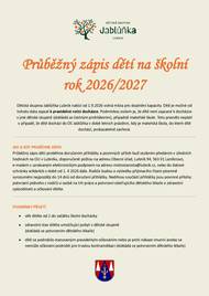 Hromadný zápis se koná ve středu 28.1.2026 od 15:00 do 16:00 v budově ZŠ.