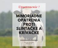 Od 21. marca 2025 platia na Slovensku mimoriadne opatrenia proti šíreniu slintačky a krívačky. Tieto opatrenia zakazujú pohyb zvierat a organizovanie hromadných podujatí, s cieľom ochrániť zvieracie chovy pred nákazou, vstupu nepovolaných osôb do chovov vnímavých zvierat.