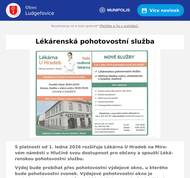 S platností od 1. ledna 2026 rozšiřuje Lékárna U Hradeb na Mírovém náměstí v Hlučíně svou dostupnost pro občany a spouští Lékárenskou pohotovostní službu. Výdej bude probíhat přes pohotovostní výdejové okno, u kterého bude pohotovostní zvonek. Výdejové pohotovostní okno je umístěno při vstupu do původní části lékárny z náměstí. Přijímáme všechny formy receptů nebo identifikátorů eRp (občanský průkaz, kód v mobilním telefonu, papírová průvodka eRp). Platba je možná hotově i kartou. V nouzových případech je možné prodat i přípravky volného prodeje. Provozní doba lékárenské pohotovostní služby je v pracovní dny, tedy od pondělí do pátku, od 18 do 20 hodin. O víkendech a státních svátcích je dostupná v čase od 16 do 19 hodin.