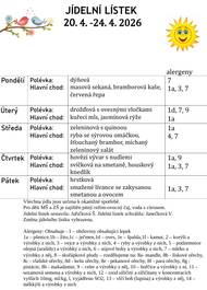 Jídelní lístek od 20. 4. do 24. 4. 2026