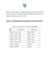 Dočasná změna hodin pro veřejnost provozovny Pošta Partner v Lužicích.