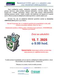 Dňa 18.7.2025 bude vývoz nebezpečného odpadu v čase od 9 do 10 hod. Nebezpečný odpad môžete v tomto čase priniesť do DVORA OBECNÉHO ÚRADU, kde ho vodič prevezme.
