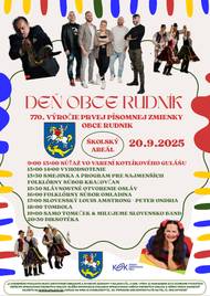 Obec Rudník oslávi 770. výročie prvej písomnej zmienky podujatím plným zábavy a kultúry, ktoré sa uskutoční 20. septembra 2025.
