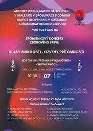 Miestny odbor Matice slovenskej v Malej Ide pozýva na spomienkový koncert zborového spevu s názvom Hlas minulosti - ozveny prítomnosti, ktorý sa uskutoční 7. decembra 2025 v kostole sv. Štefana Prvomučeníka.