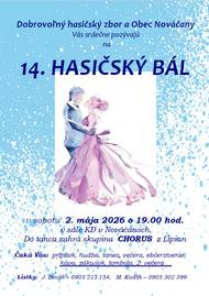 Dobrovoľný hasičský zbor a Obec Nováčany vás pozývajú na 14. Hasičský bál, ktorý sa uskutoční v sobotu 2. mája 2026 o 19.00 hod. v sále KD v Nováčanoch.