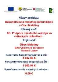 Pri príležitosti Dňa zeme organizuje obec Malatíny jarné upratovanie obce v sobotu 18. apríla 2026 so zrazom o 9:00 hod. pred kultúrnym domom. Zároveň sa uskutoční zber elektroodpadu a textilného odpadu. O občerstvenie bude postarané. Všetci ste vítaní. Podrobnosti nájdete v priloženom letáku.