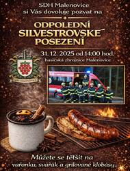 SDH Malenovice si Vás dovoluje pozvat na Odpolední silvestrovské posezení - od 14.00 v hasičské zbrojnici.