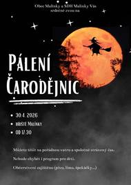 Sbor dobrovolných hasičů Malínky pořádá ve čtvrtek dne 30.04.2026 od 17:30 hod. na hřišti v Malínkách akci "Pálení čarodějnic". Občerstvení zajištěno.