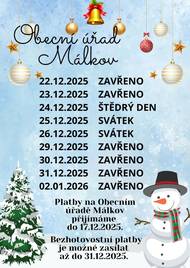 Informujeme o omezené provozní době Pošty Partner od 23. prosince 2024 do 3. ledna 2025. V uvedeném období budou stanoveny specifické hodiny otevření, včetně zavření na Silvestra.