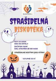 🕸️💃 Strašidelná diskotéka v Krtelích 🕺🕷️ Dne 8.11.2025 od 15:00 v KD Krtely. Vstupné: 50 Kč Přijďte si zatančit na děsivě dobrou diskotéku! Čeká vás odpoledne plné hudby, zábavy a strašidelné atmosféry. 👻🎶