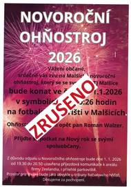 Vážení občané, z důvodu novely zákona o pyrotechnice, který zásadně mění to, kde a jak lze odpalovat zábavní pyrotechniku, se plánovaný novoroční ohňostroj neuskuteční. Děkujeme za pochopení.
