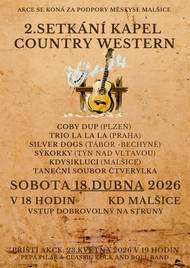 Vážení občané, v sobotu 18.4.2026 od 18 hodin Vás zveme na 2. SETKÁNÍ KAPEL COUNTRY WESTERN v KD Malšice. Vstup dobrovolný.