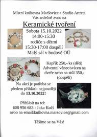 Místní lidová knihovna a studio Artteta Vás zvou na KERAMICKÉ TVOŘENÍ