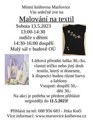 Místní lidová knihovna Maršovice Vás srdečně zve na ,, Malování na textil"