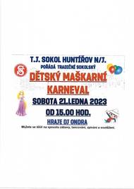 Pozvánka na plánované akce T.J. Sokol Huntířov n.J na Dětský maškarní karneval a Šibřinky