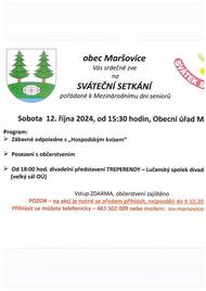 Dne 12.října Obec Maršovice pořádá Sváteční setkání seniorů. S politováním vám musíme oznámit, že sváteční odpoledne pro seniory se z důvodu malé účasti ruší. Bude náhradní termín.