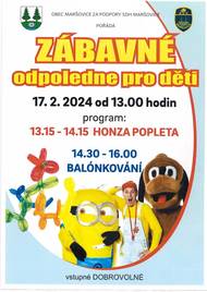 Obec Maršovice za podpory SDH Maršovice pořádá zábavné odpoledne pro děti.