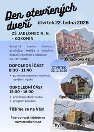 Den otevřených dveří 2026 v ZŠ Jablonec- Kokonín.