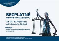 Mesto Martin sa po prvý raz zapája do celoslovenského projektu Deň advokácie, ktorý prinesie bezplatné právne poradenstvo pre verejnosť. Obyvatelia budú môcť využiť pomoc advokátov v stredu 22. apríla 2026 symbolicky priamo v priestoroch bývalej Advokátskej komory.