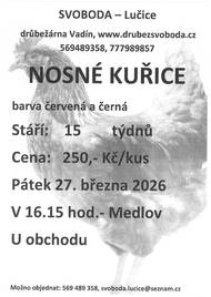 Oznámení o přerušení dodávky elektrické energie. Z důvodu plánovaných prací na zařízení distribuční soustavy - rekonstrukcí, oprav,údržbových a revizních prací - bude přerušena dodávka elektrické energie. Dne 23.04.2026 od 08:00 do 23.04.2026 14:00 Vypnutá oblast:Medlov - lokalita Medlovský mlýn, - za Jezerem č.p. 17, 41 a hřiště, - ulice u Obecního úřadu severní strana od jezera po č.p. 148, jižní strana celá, - ul. za Obecním úřadem, - ulice ke družstvu levá strana od č.p. 231 po č.p. 213, pravá strana č.p. 172, 234 (mimo ZD)