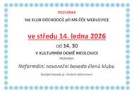 Neformální novoroční beseda proběhne ve středu 14. 1. 2026 od 14:30 na KD Medlovice.