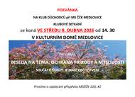 Ve středu 8. dubna 2026 od 14:30 na KD Medlovice.