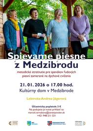 Dňa 21.1.2026 sa v zasadačke Kultúrneho domu v Medzibrode uskutoční metodické stretnutie pre spevákov ľudových piesní zamerané na dychové cvičenia.