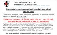 Obecní úřad Mělnické Vtelno upozorňuje poplatníky, že splatnost poplatků za odpad pro rok 2026 je do 28.02.2026.