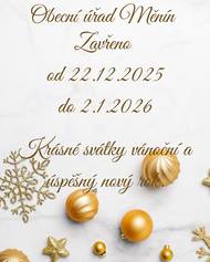 Obecní úřad bude od 22.12.2025 do 2.1.2026 uzavřen. Přejeme vám krásné svátky vánoční a úspěšný nový rok.