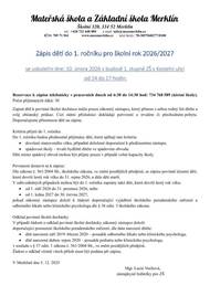 Zápis dětí do 1. ročníku pro školní rok 2026/2027